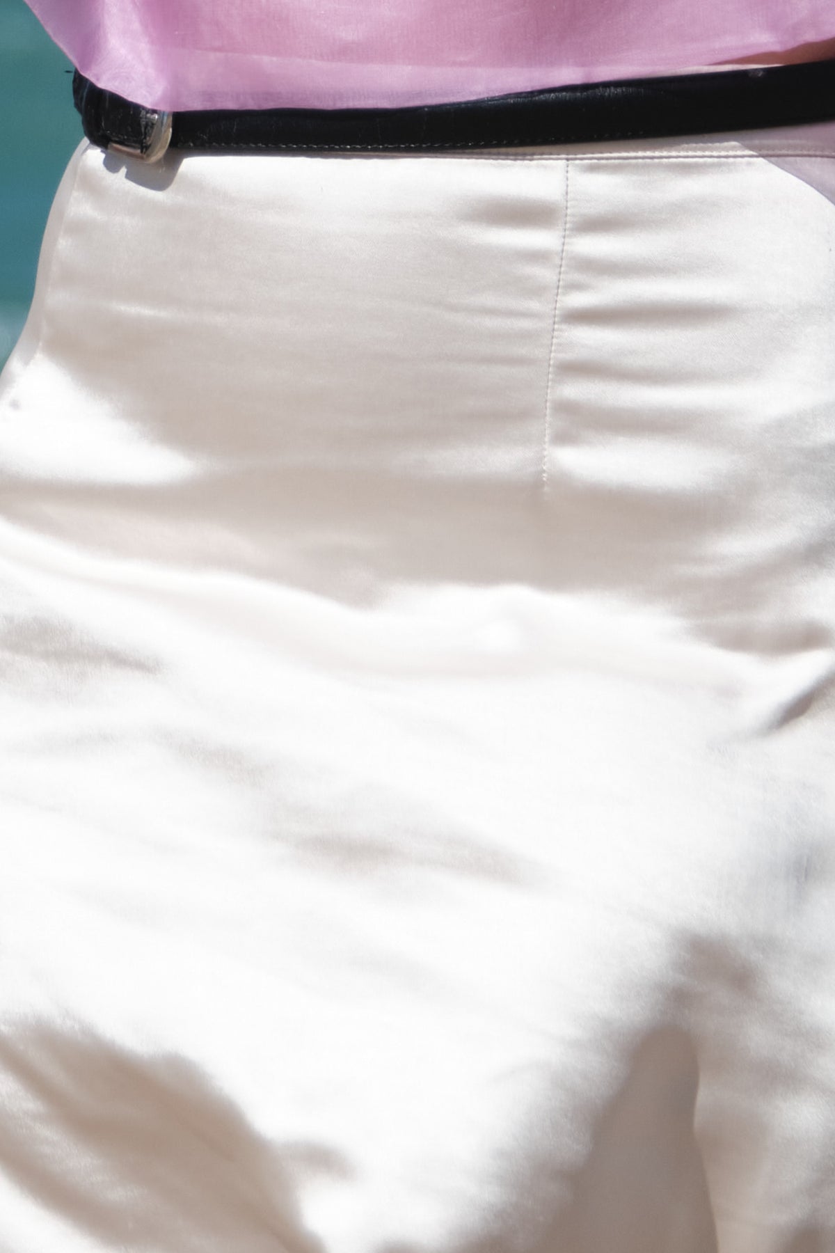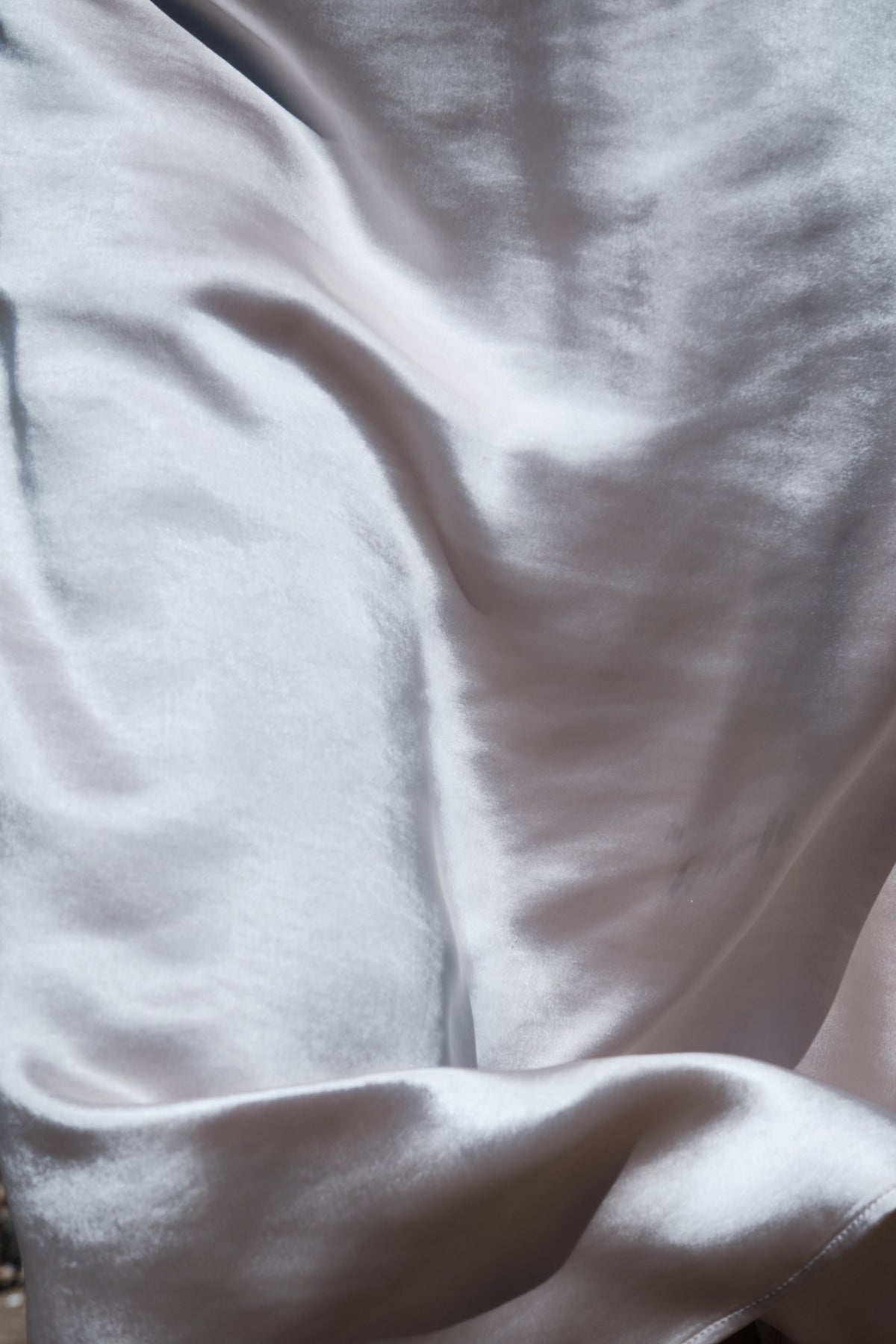 Stand out from the crowd in our stunning and versatile Gabrielle skirt, this season in a midi length in a luscious liquid reflective metal silver. Her form stands out in the crowd of simple bias cut skirts with her high waisted tailored fit and stunning back tombé, meticulously achieved with the perfect weight of our satin back crepe. Paired with sneakers, flats or heels for a night out, Gabrielle adds chic, feminine energy to both casual and dressed up looks while keeping you in total comfort and ease.
